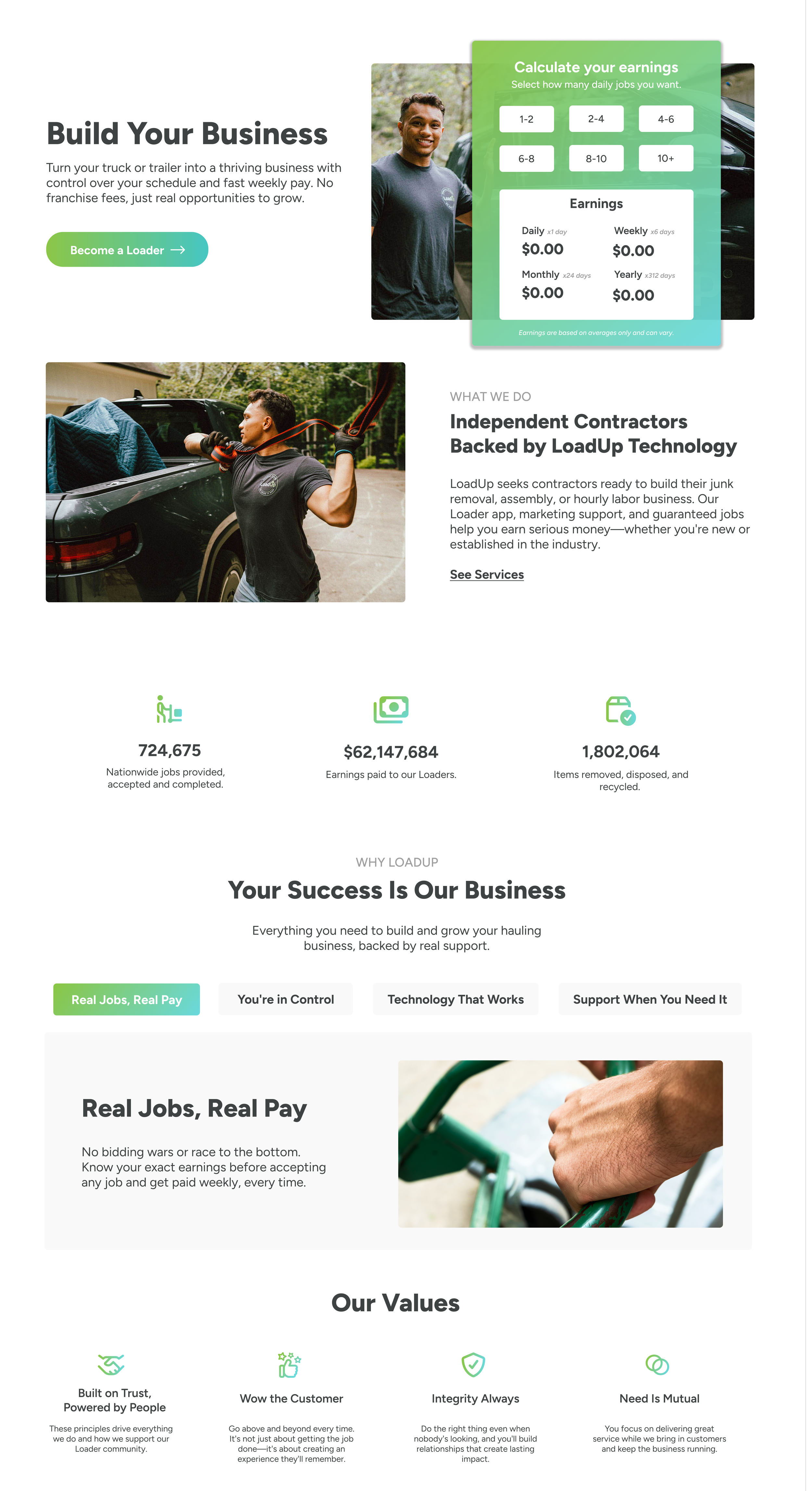 At LoadUp and its family of brands, I have served as the Brand and Creative Manager for the company. During my time there, I’ve redesigned 2 website homepages, launched static + dynamic ad campaigns, and designed several print projects including trade show booths and materials, a full vehicle wrap, and print flyers.